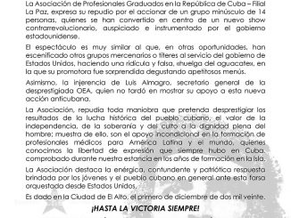 La Asociación de Profesionales Graduados en la República de Cuba – Filial La Paz- expresa su repudio por el accionar de un grupo minúsculo de / Leer más →